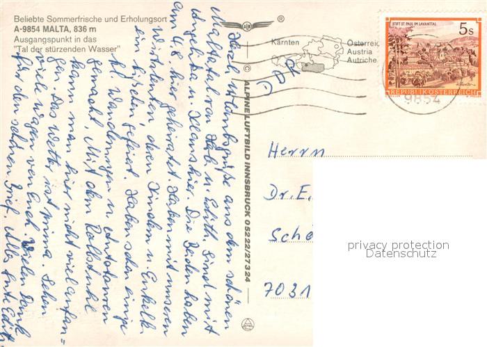 73714112 alte Postkarte Malta Kaernten Sommerfrische Erholungsort Ausgangspunkt ins Tal der stuerzenden Wasser postalisch gelaufen Fliegeraufnahme Erhaltung siehe scans [FriedD77] KatCode: 11390212020619