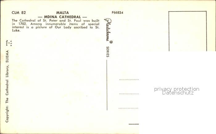 Malta Kathedrale Peter und Paul postalisch nicht gelaufen Erhaltung siehe scans