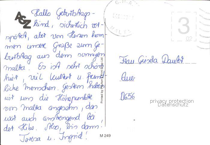 old postcard Malta Kirche Hafen Boote postalisch gelaufen Erhaltung siehe scans