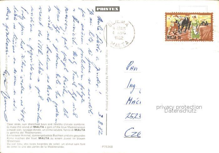 old postcard Malta Kirche Hafen Pfedekutsche Blaue Grotte postalisch gelaufen Erhaltung siehe scans
