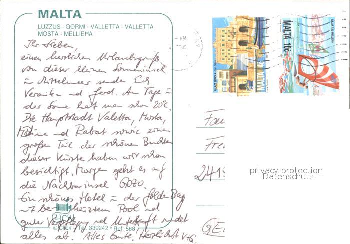 old postcard Malta Luzzus Qormi Valletta Mellieha postalisch gelaufen Erhaltung siehe scans