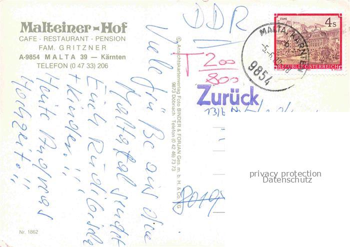 74095944 alte Postkarte Malta Maltatal Kaernten AT Malteinerhof Park postalisch gelaufen Erhaltung siehe scans [WerneD78] KatCode: 11390212020619