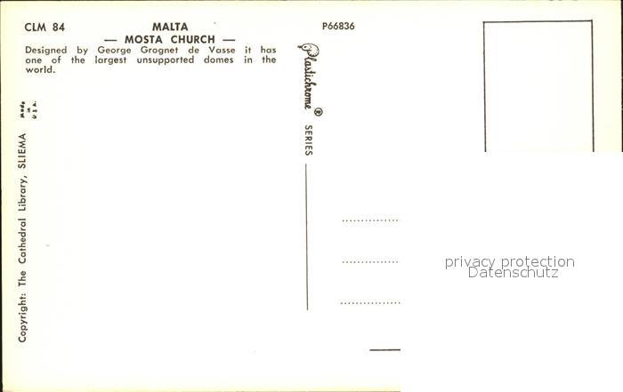 Malta Mosta Church at night postalisch nicht gelaufen Erhaltung siehe scans [WerneD78]