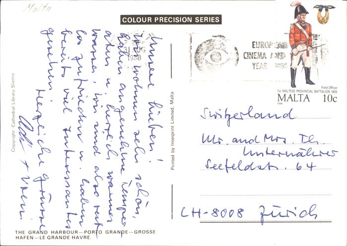 old postcard Malta Panorama Schiffsverkehr postalisch gelaufen gute Erhaltung