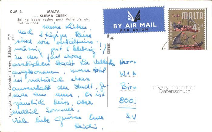 old postcard Malta Sliema Creek Sailing boats Valetta’s Fortifications postalisch gelaufen Erhaltung siehe scans