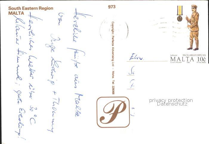 old postcard Malta South Eastern Region postalisch gelaufen Erhaltung siehe scans