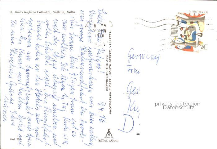 old postcard Malta St. Pauls Bay Anglicon Cathedral Segelboote postalisch gelaufen Erhaltung siehe scans