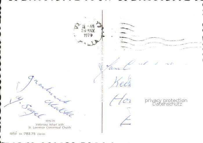 old postcard Malta Vittoriosa Wharf postalisch gelaufen Erhaltung siehe scans