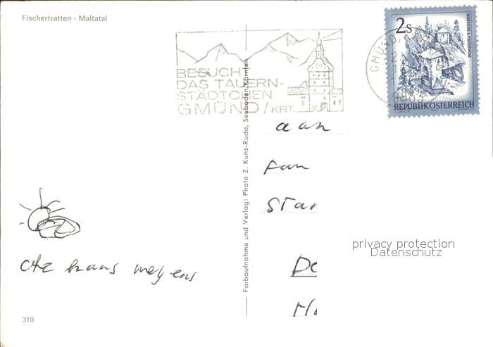 72411872 alte Postkarte Maltatal Kaernten Fischertratten postalisch gelaufen Erhaltung siehe scans KatCode: 11390212020619