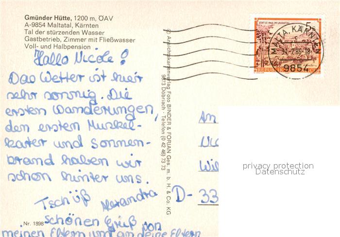 73354891 alte Postkarte Maltatal Kaernten Gmuenderhuette Panorama Wasserfall postalisch gelaufen Erhaltung siehe scans [WerneD78] KatCode: 11390212020619