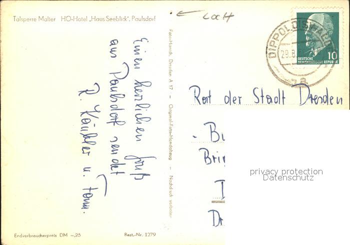 72401824 alte Postkarte Malter Talsperre HO Hotel Haus Seeblick Paulsdorf postalisch gelaufen Erhaltung siehe scans KatCode: 11110014290080