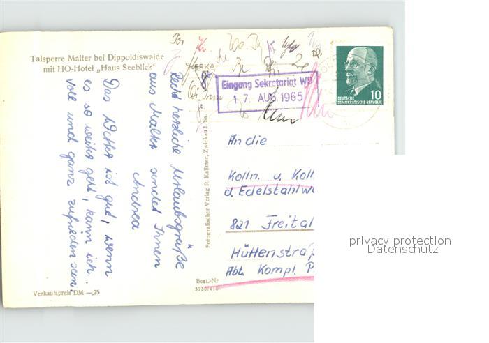 72412720 alte Postkarte Malter Talsperre HO Hotel Haus Seeblick postalisch gelaufen Erhaltung siehe scans KatCode: 11110014290080