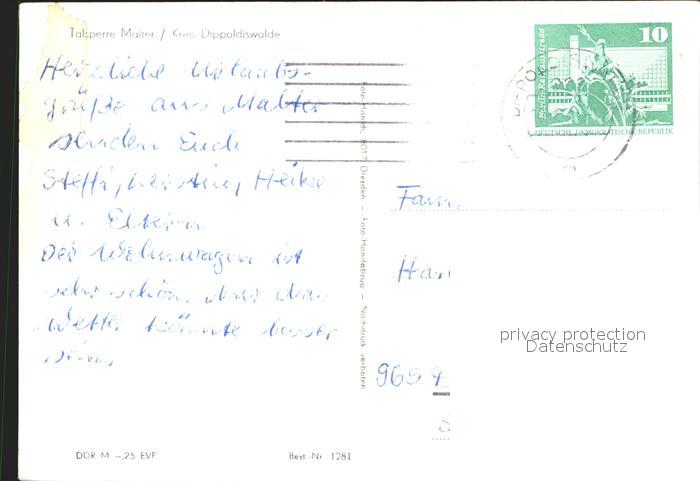 72366490 alte Postkarte Malter Talsperre Malter postalisch gelaufen Erhaltung siehe scans KatCode: 11110014290080