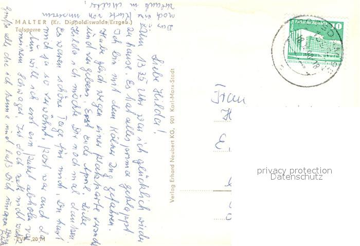 72985805 alte Postkarte Malter Talsperre postalisch gelaufen Erhaltung siehe scans [WerneD78] KatCode: 11110014290080