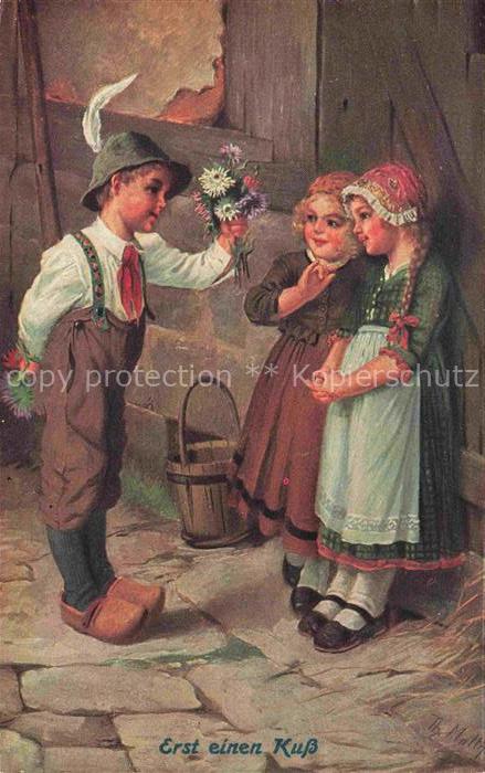 MALTHEI Th. Kuenstlerkarte Erst einen Kuss Kinder Litho