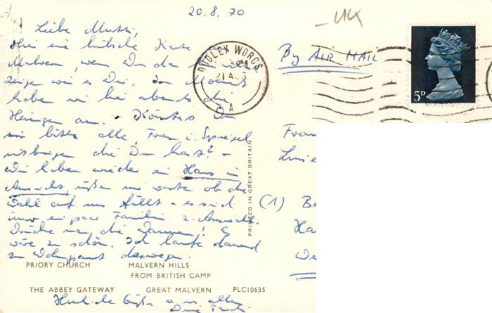 73904592 old postcard Malvern UK Priory Church The Abbey Gateway Malvern Hills from British Camp Great Malvern postalisch gelaufen Erhaltung siehe scans [FriedD77] KatCode: 11570UKG1G12UC