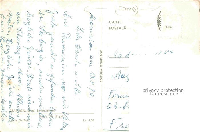 74043229 old postcard Mamaia Constanta Konstanza RO Hotel International postalisch gelaufen Erhaltung siehe scans [WerneD78] KatCode: 11430