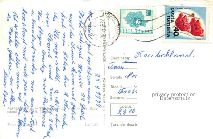 74150896 old postcard Mamaia Constanta Konstanza RO Strand Badegaeste Sonnenschirme Strandleben Schwarzmeer Urlaubsstrand postalisch gelaufen Erhaltung siehe scans [Karloger] KatCode: 11430