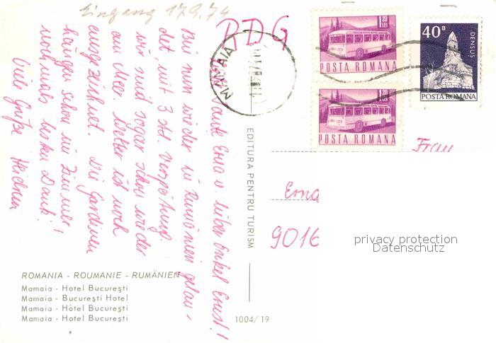 old postcard Mamaia Hotel Bucuresti Brunnen postalisch gelaufen Erhaltung siehe scans [FriedD77]