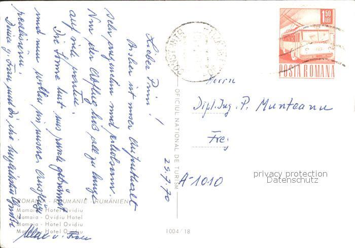 old postcard Mamaia Hotel Ovidiu postalisch gelaufen Erhaltung siehe scans