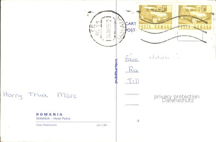 old postcard Mamaia Hotel Patria postalisch gelaufen Erhaltung siehe scans