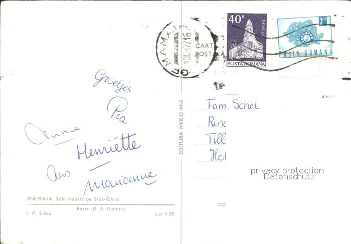 old postcard Mamaia Schi nautic pe Siut Ghiol Wasserski postalisch gelaufen