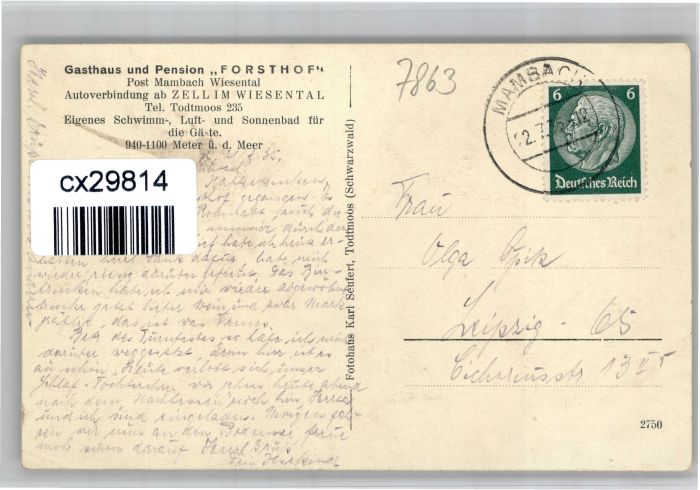 30923940 alte Postkarte Mambach Gasthaus Pension Forsthof postalisch gelaufen KatCode: 11110008336103