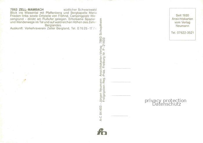 74023622 Mambach Zell im Wiesental Fliegeraufnahme postalisch nicht gelaufen Erhaltung siehe scans [FriedD77] KatCode: 11110008336103