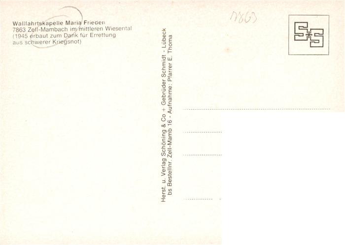 73935001 Mambach Zell im Wiesental Wallfahrtskapelle Maria Frieden postalisch nicht gelaufen Erhaltung siehe scans [WerneD78] KatCode: 11110008336103