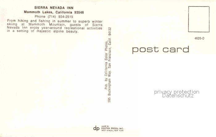 72856114 Mammoth Lakes Sierra Nevada Inn postalisch nicht gelaufen Erhaltung siehe scans [NatalD47] KatCode: 14140050000000