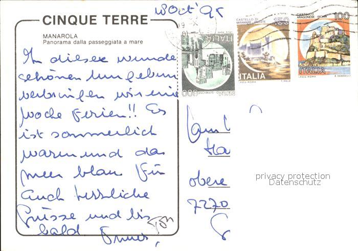 old postcard Manarola Panorama dalla passegiatta a mare postalisch gelaufen Erhaltung siehe scans