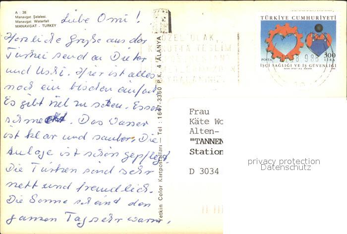 old postcard Manavgat Wasserfall postalisch gelaufen Erhaltung siehe scans