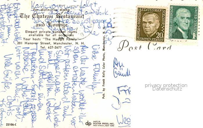 72876359 old postcard Manchester New Hampshire The Chàteau Restaurant postalisch gelaufen Erhaltung siehe scans [AndreD76] KatCode: 14140310000000