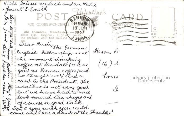 old postcard Manchester Old Shambles postalisch gelaufen Erhaltung siehe scans