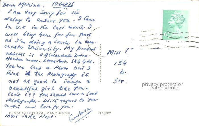 old postcard Manchester Piccadilly Plaza Skyscraper postalisch gelaufen Erhaltung siehe scans
