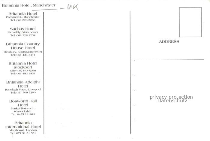 74021823 MANCHESTER UK Britannia Hotel Foyer Treppenaufgang postalisch nicht gelaufen Erhaltung siehe scans [FriedD77] KatCode: 11570UKD3D31BN