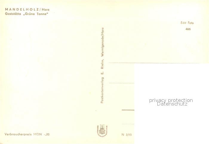 73593488 Mandelholz Harz Gaststaette Gruene Tonne Staubecken Landschaftspanorama postalisch nicht gelaufen Erhaltung siehe scans [FriedD77] KatCode: 11110015085105