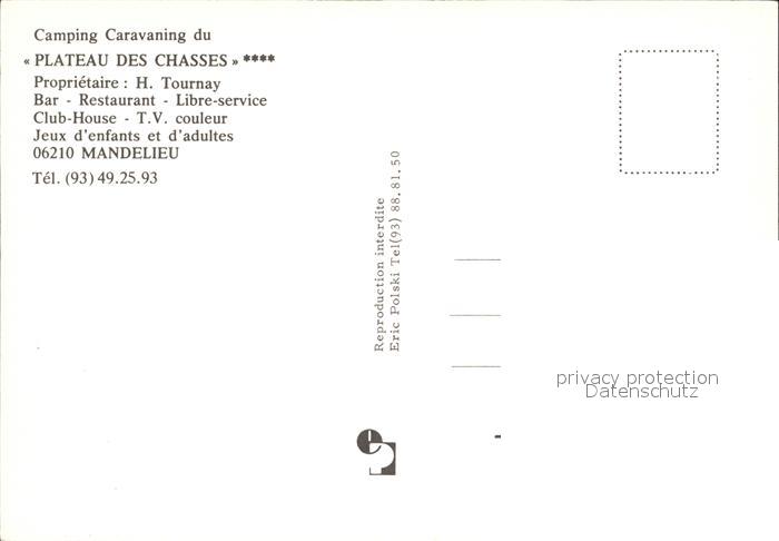 12034423 Mandelieu-la-Napoule Camping Caravaning Plateau des Chasses postalisch nicht gelaufen Erhaltung siehe scans KatCode: 11170006106079