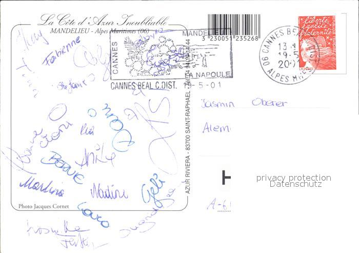 12313464 carte postale Mandelieu-la-Napoule Fliegeraufnahme postalisch gelaufen Erhaltung siehe scans KatCode: 11170006106079