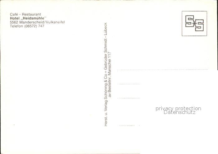 72595791 Manderscheid Eifel Cafe Restaurant Heidsmuehle Schwanenteich postalisch nicht gelaufen Erhaltung siehe scans [FriedD77] KatCode: 11110007231080
