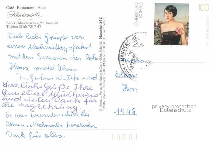 72691361 alte Postkarte Manderscheid Eifel Cafe Restaurant Hotel Heidsmuehle Schwanenteich Panorama Vulkaneifel Gipfelkreuz See postalisch gelaufen Erhaltung siehe scans [FriedD77] KatCode: 11110007231080