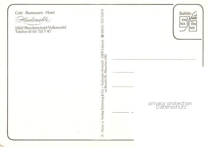 73170516 Manderscheid Eifel Cafe Restaurant Hotel Heidsmuehle Schwanenteich Teich Landschaftspanorama Felsen Gipfelkreuz postalisch nicht gelaufen Erhaltung siehe scans [FriedD77] KatCode: 11110007231080