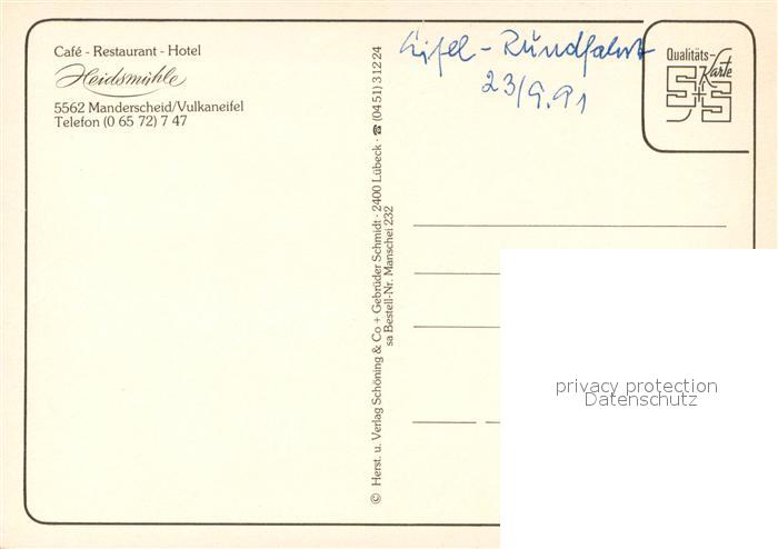 73711906 Manderscheid Eifel Cafe-Restaurant-Hotel Heidsmuehle Teilansichten Innen und Aussen postalisch nicht gelaufen Erhaltung siehe scans [LiesaD40] KatCode: 11110007231080