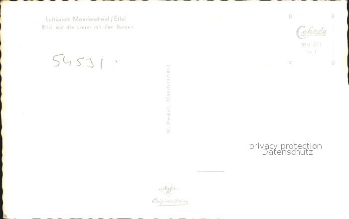 72448254 Manderscheid Eifel Die Lieser mit den Burgen postalisch nicht gelaufen Erhaltung siehe scans KatCode: 11110007231080