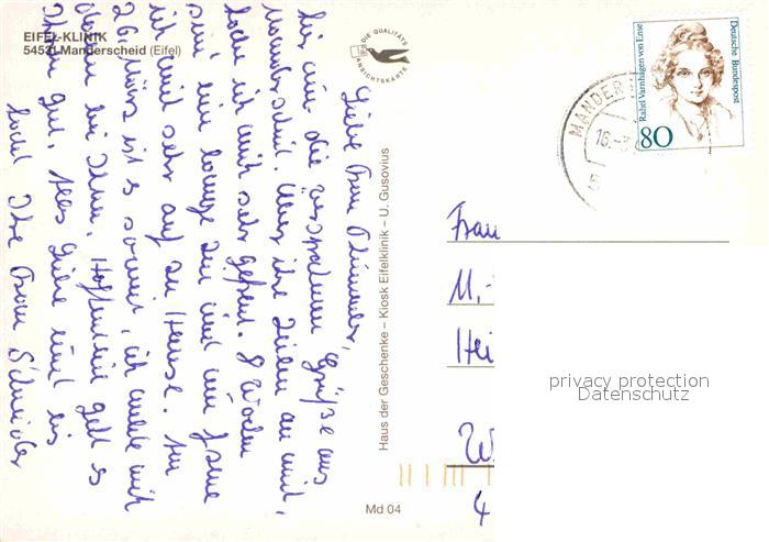 72752687 alte Postkarte Manderscheid Eifel Eifel-Klinik mit Schwimmbad postalisch gelaufen Erhaltung siehe scans [LiesaD40] KatCode: 11110007231080