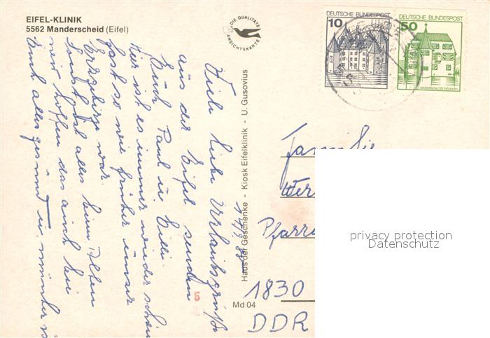 73711901 alte Postkarte Manderscheid Eifel Eifel-Klinik Teilansichten postalisch gelaufen Erhaltung siehe scans [LiesaD40] KatCode: 11110007231080