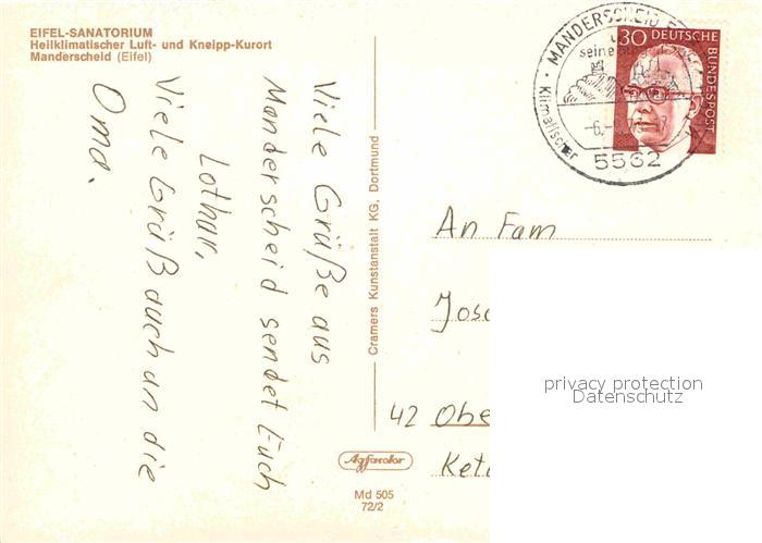 72837463 alte Postkarte Manderscheid Eifel Eifel-Sanatorium Schwimmbad Lese- und Schreibraum postalisch gelaufen Erhaltung siehe scans [PaolaD17] KatCode: 11110007231080