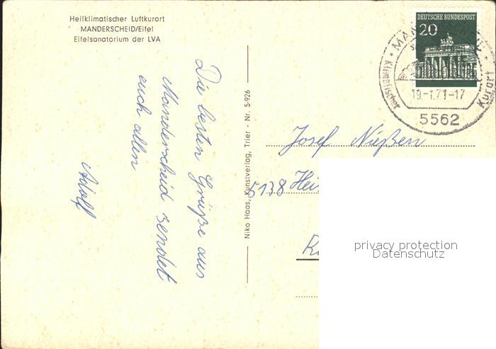 72238515 alte Postkarte Manderscheid Eifel Eifelsanatorium LVA postalisch gelaufen Erhaltung siehe scans KatCode: 11110007231080
