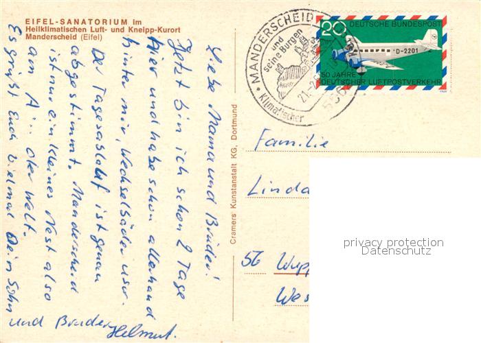 73170504 alte Postkarte Manderscheid Eifel Eifelsanatorium Mehrzweckhalle Leseraum Aufenthaltsraum Hallenbad Empfangshalle postalisch gelaufen Erhaltung siehe scans [FriedD77] KatCode: 11110007231080