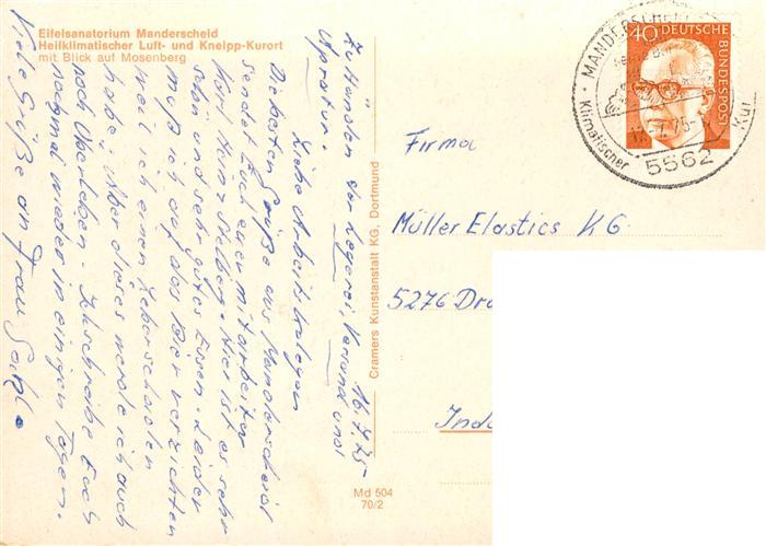 73880560 alte Postkarte Manderscheid Eifel Eifelsanatorium mit Blick auf Mosenberg postalisch gelaufen Erhaltung siehe scans [WerneD78] KatCode: 11110007231080